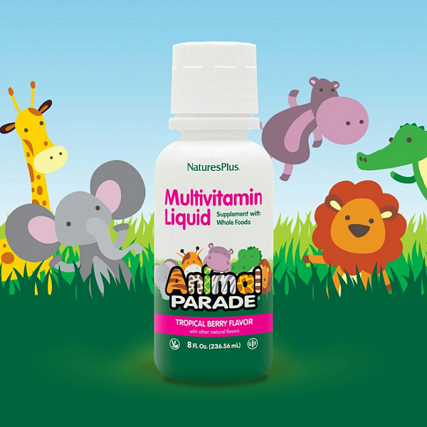 Animal Parade Multivitamin Liquid сочетает эти витамины и минералы в легко усвояемой форме, что способствует нормальному росту костей, развитию мышечной системы и укреплению иммунной защиты.